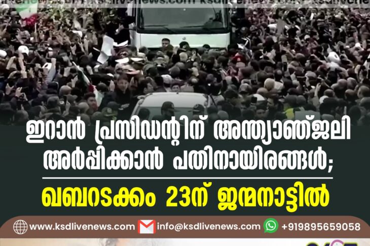 വിദേശം ഇറാൻ പ്രസിഡന്റിന് അന്ത്യാഞ്ജലി അർപ്പിക്കാൻ പതിനായിരങ്ങൾ; ഖബറടക്കം 23ന് ജന്മനാട്ടിൽMay 21, 2024