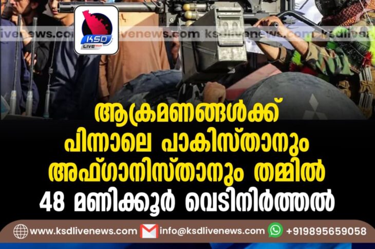 വിദേശം ആക്രമണങ്ങള്ക്ക് പിന്നാലെ പാകിസ്താനും അഫ്ഗാനിസ്താനും തമ്മിൽ 48 മണിക്കൂർ വെടിനിർത്തൽOctober 16, 2025