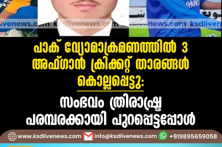 വിദേശം പാക് വ്യോമാക്രമണത്തില് 3 അഫ്ഗാന് ക്രിക്കറ്റ് താരങ്ങള് കൊല്ലപ്പെട്ടു: സംഭവം ത്രിരാഷ്ട്ര പരമ്പരക്കായി പുറപ്പെട്ടപ്പോള്October 18, 2025