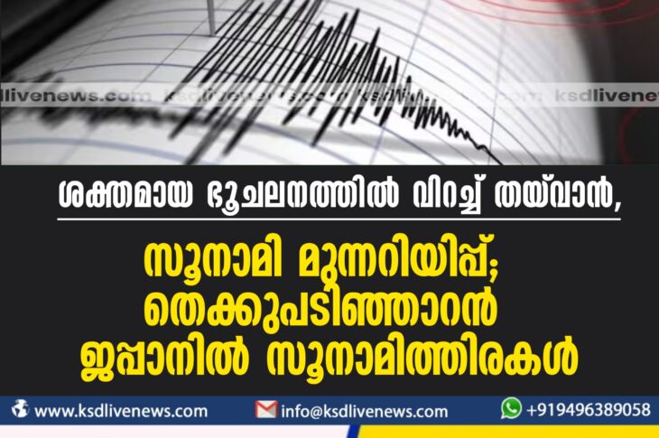 വിദേശം ശക്തമായ ഭൂചലനത്തിൽ വിറച്ച് തയ്വാൻ, സൂനാമി മുന്നറിയിപ്പ്; തെക്കുപടിഞ്ഞാറൻ ജപ്പാനിൽ സൂനാമിത്തിരകൾApril 3, 2024