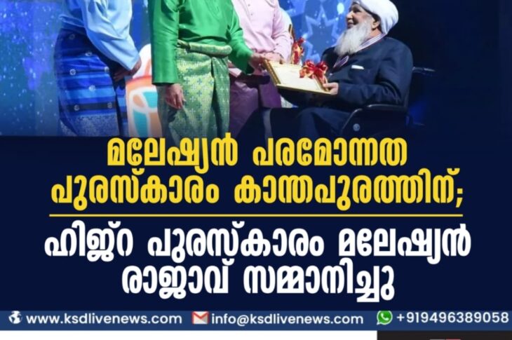 വിദേശം മലേഷ്യൻ പരമോന്നത പുരസ്കാരം കാന്തപുരത്തിന്; ഹിജ്റ പുരസ്കാരം മലേഷ്യൻ രാജാവ് സമ്മാനിച്ചുJuly 19, 2023