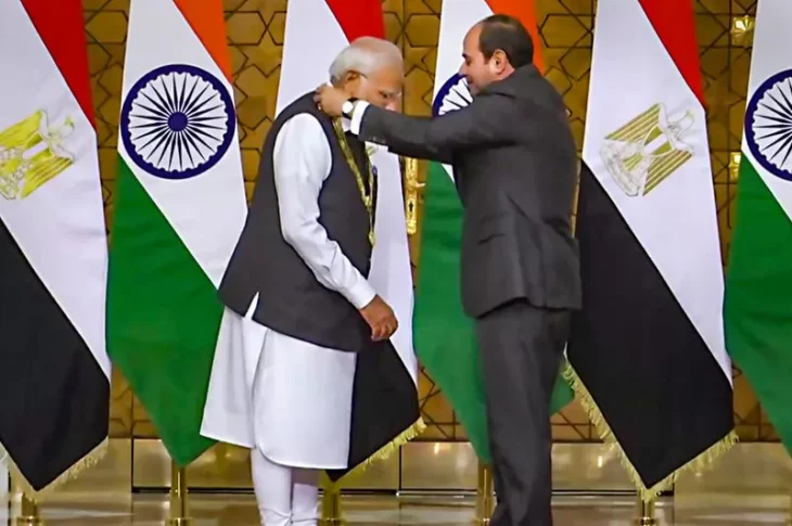 വിദേശം ഈജിപ്തിന്റെ പരമോന്നത സിവിലിയന് പുരസ്കാരമായ ‘ഓര്ഡര് ഓഫ് ദ നൈല്’ മോദിക്ക് നൽകി ഈജിപ്ത് പ്രസിഡന്റ് അബ്ദുൽ ഫത്താഹ് എൽ-സിസിJune 25, 2023