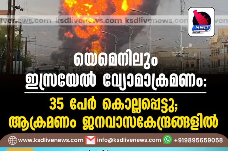 വിദേശം യെമെനിലും ഇസ്രയേൽ വ്യോമാക്രമണം: 35 പേർ കൊല്ലപ്പെട്ടു; ആക്രമണം ജനവാസകേന്ദ്രങ്ങളിൽSeptember 11, 2025