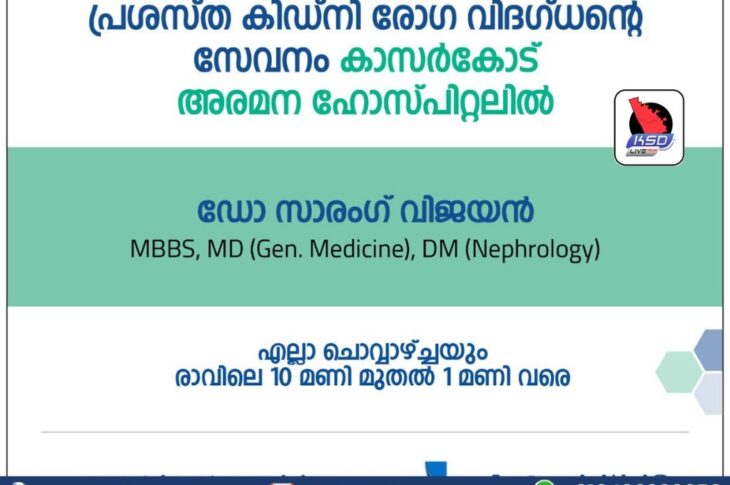 കാസർഗോഡ്വിദ്യാഭ്യാസം കണ്ണൂർ ആസ്റ്റർ മിംസ് ആശുപത്രിയിലെ നെഫ്രോളജി (കിഡ്നി) വിഭാഗം കാസർകോഡ് അരമന ഹോസ്പിറ്റലിൽJanuary 14, 2022