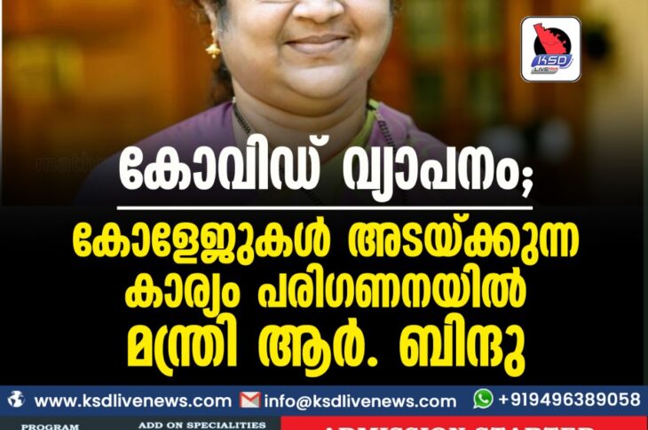 കേരളംകോവിഡ് 19വിദ്യാഭ്യാസം കോവിഡ് വ്യാപനം: കോളേജുകള് അടയ്ക്കുന്ന കാര്യം പരിഗണനയില്- മന്ത്രി ആര്. ബിന്ദുJanuary 18, 2022
