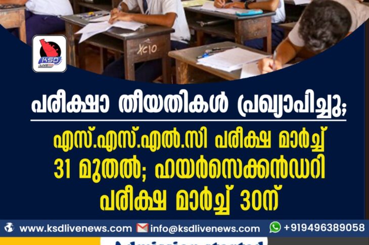 കേരളംവിദ്യാഭ്യാസം പരീക്ഷാ തീയതികൾ പ്രഖ്യാപിച്ചു; എസ്.എസ്.എല്.സി പരീക്ഷ മാര്ച്ച് 31 മുതല്; ഹയര്സെക്കന്ഡറി പരീക്ഷ മാര്ച്ച് 30ന്December 27, 2021