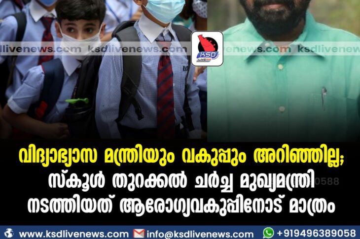 കേരളംവിദ്യാഭ്യാസം വിദ്യാഭ്യാസ മന്ത്രിയും വകുപ്പും അറിഞ്ഞില്ല:സ്കൂൾ തുറക്കൽ ചർച്ച മുഖ്യമന്ത്രി നടത്തിയത് ആരോഗ്യവകുപ്പിനോട് മാത്രംSeptember 18, 2021