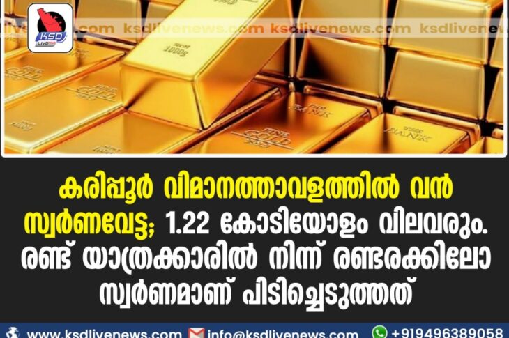 flash newsകേരളം കരിപ്പൂര് വിമാനത്താവളത്തില് വന് സ്വര്ണവേട്ട;1.22 കോടിയോളം വിലവരും. രണ്ട് യാത്രക്കാരില് നിന്ന് രണ്ടരക്കിലോ സ്വര്ണമാണ് പിടിച്ചെടുത്തത്.August 14, 2021