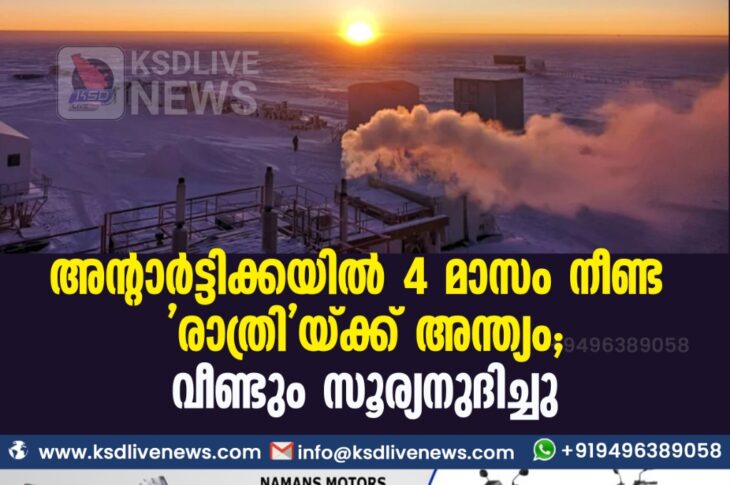 flash news അന്റാര്ട്ടിക്കയില് 4 മാസം നീണ്ട ‘രാത്രി’യ്ക്ക് അന്ത്യം; വീണ്ടും സൂര്യനുദിച്ചുAugust 23, 2021