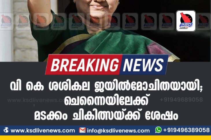 flash newsദേശീയം വി കെ ശശികല ജയിൽമോചിതയായി ; ചെന്നൈയിലേക്ക് മടക്കം ചികിത്സയ്ക്ക് ശേഷംJanuary 27, 2021