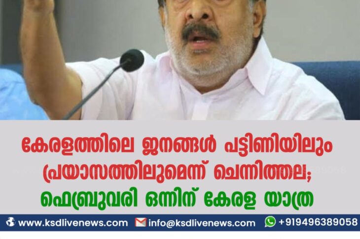 flash newsകേരളം കേരളത്തിലെ ജനങ്ങള് പട്ടിണിയിലും പ്രയാസത്തിലുമെന്ന് ചെന്നിത്തല; ഫെബ്രുവരി ഒന്നിന് കേരള യാത്രJanuary 11, 2021