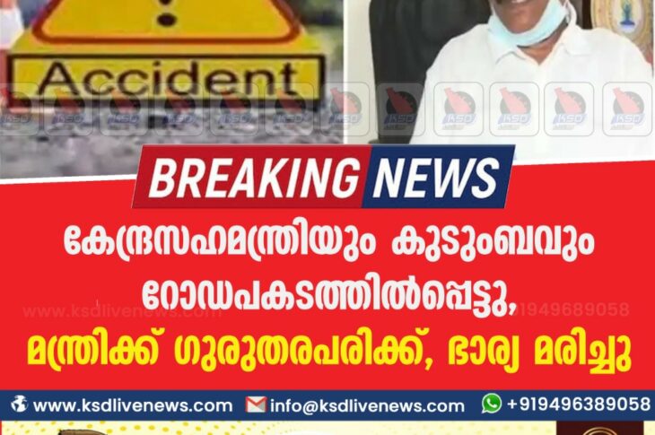 flash newsദേശീയം കേന്ദ്രസഹമന്ത്രിയും കുടുംബവും റോഡപകടത്തിൽപ്പെട്ടു , മന്ത്രിക്ക് ഗുരുതരപരിക്ക് , ഭാര്യ മരിച്ചുJanuary 11, 2021