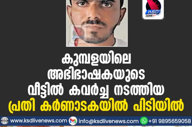 Uncategorized കുമ്പളയിലെ അഭിഭാഷകയുടെ വീട്ടില് കവര്ച്ച നടത്തിയ പ്രതി കര്ണാടകയില് പിടിയില്January 23, 2026