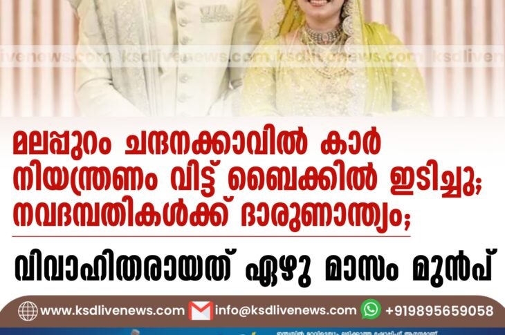 ACCIDENTകേരളം മലപ്പുറം ചന്ദനക്കാവിൽ കാർ നിയന്ത്രണം വിട്ട് ബൈക്കിൽ ഇടിച്ചു; നവദമ്പതികൾക്ക് ദാരുണാന്ത്യം; വിവാഹിതരായത് ഏഴു മാസം മുൻപ്October 28, 2025
