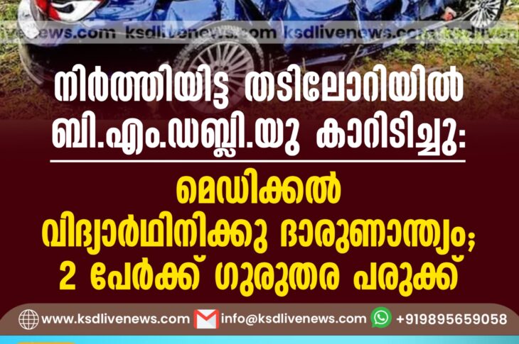 ACCIDENTദേശീയം നിർത്തിയിട്ട തടിലോറിയിൽ ബിഎംഡബ്ലിയു കാറിടിച്ചു; മെഡിക്കൽ വിദ്യാർഥിനിക്കു ദാരുണാന്ത്യം, 2 പേർക്ക് ഗുരുതര പരുക്ക്December 12, 2025