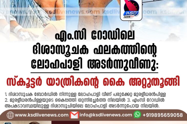 ACCIDENTകേരളം എംസി റോഡിലെ ദിശാസൂചക ഫലകത്തിന്റെ ലോഹപാളി അടർന്നുവീണു; സ്കൂട്ടർ യാത്രികന്റെ കൈ അറ്റുതൂങ്ങിDecember 12, 2025