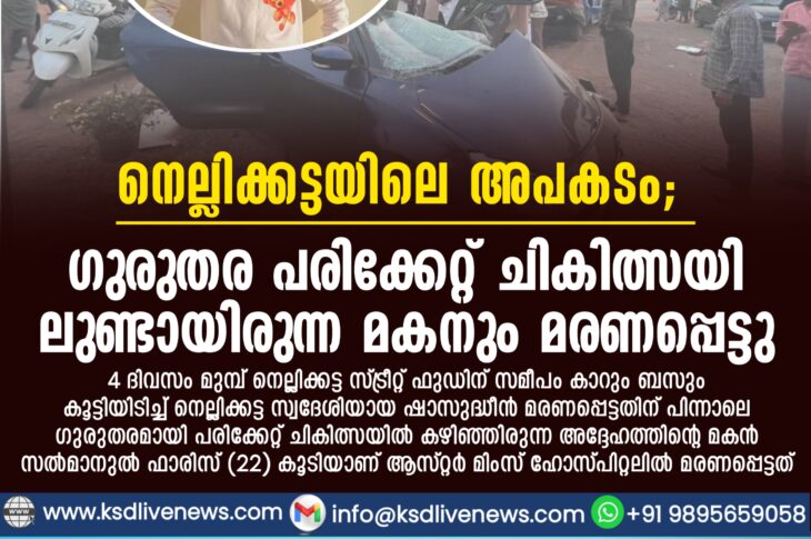 ACCIDENTകാസർഗോഡ് നെല്ലിക്കട്ടയിലെ അപകടം; ഗുരുതര പരിക്കേറ്റ് ചികിത്സയിലുണ്ടായിരുന്ന മകനും മരണപ്പെട്ടുFebruary 26, 2026
