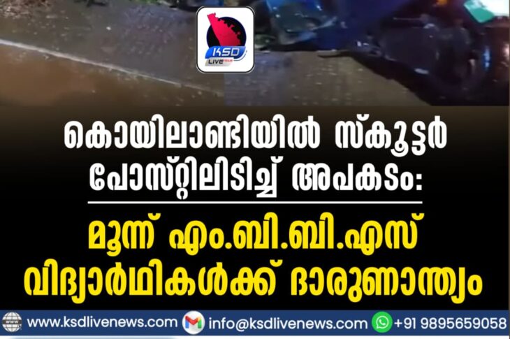 ACCIDENTകേരളം കൊയിലാണ്ടിയിൽ സ്കൂട്ടർ പോസ്റ്റിലിടിച്ച് അപകടം; മൂന്ന് എം.ബി.ബി.എസ് വിദ്യാർഥികൾക്ക് ദാരുണാന്ത്യംMarch 18, 2026