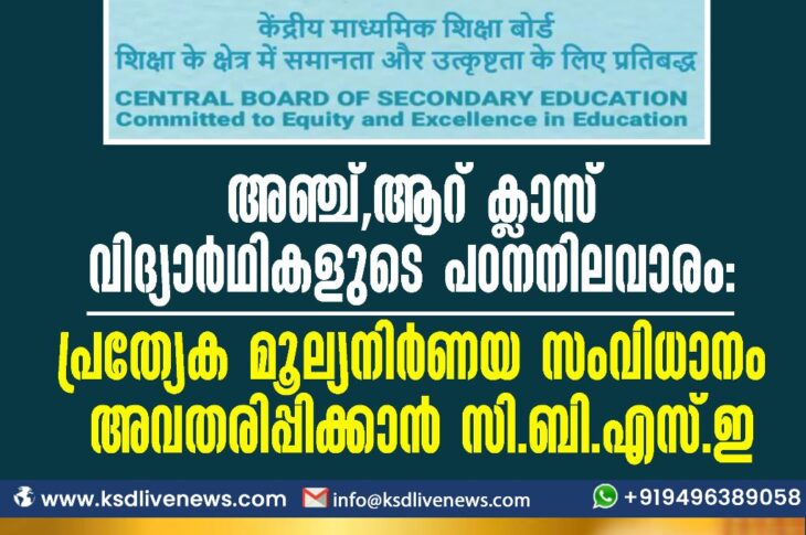 Uncategorized അഞ്ച്,ആറ് ക്ലാസ് വിദ്യാര്ഥികളുടെ പഠനനിലവാരം: പ്രത്യേക മൂല്യനിര്ണയസംവിധാനം അവതരിപ്പിക്കാന് സിബിഎസ്ഇJune 26, 2023