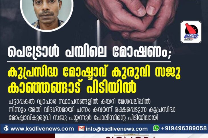 Uncategorized പെട്രോള് പമ്പിലെ മോഷണം; കുപ്രസിദ്ധ മോഷ്ടാവ് കുരുവി സജു കാഞ്ഞങ്ങാട് പിടിയിൽMay 27, 2023