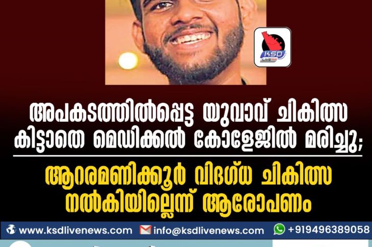 Uncategorized അപകടത്തിൽപ്പെട്ട യുവാവ് മെഡിക്കൽ കോളേജിൽ മരിച്ചു; ആറരമണിക്കൂർ വിദഗ്ധ ചികിത്സ നൽകിയില്ലെന്ന് ആരോപണംMay 31, 2023