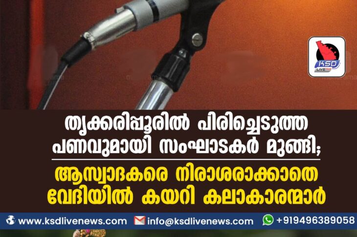 Uncategorized പിരിച്ചെടുത്ത പണവുമായി സംഘാടകർ മുങ്ങി; ആസ്വാദകരെ നിരാശരാക്കാതെ വേദിയിൽ കയറി കലാകാരന്മാർMay 15, 2023