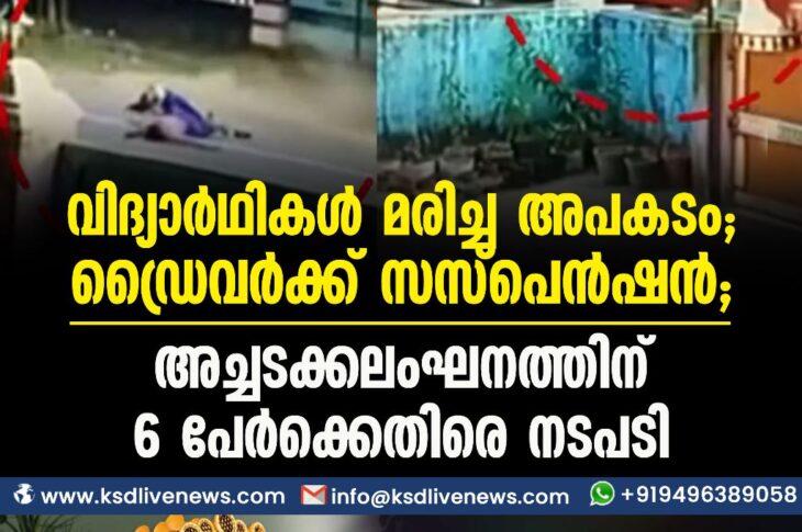 Uncategorized വിദ്യാര്ഥികള് മരിച്ച അപകടം: ഡ്രൈവര്ക്ക് സസ്പെന്ഷന്, അച്ചടക്കലംഘനത്തിന് 6 പേര്ക്കെതിരെ നടപടിMarch 3, 2023