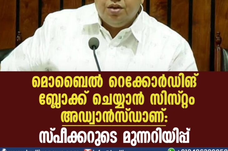 Uncategorized ‘മൊബൈല് റെക്കോര്ഡിങ് ബ്ലോക്ക് ചെയ്യാന് സിസ്റ്റം അഡ്വാന്സ്ഡാണ്’: സ്പീക്കറുടെ മുന്നറിയിപ്പ്March 16, 2023