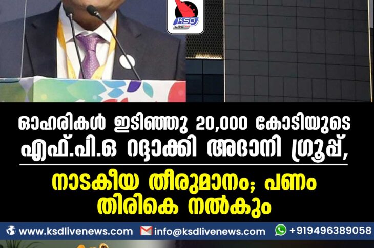 Uncategorized ഓഹരികൾ ഇടിഞ്ഞു20,000 കോടിയുടെ എഫ്പിഒ റദ്ദാക്കി അദാനി ഗ്രൂപ്പ്, നാടകീയ തീരുമാനം; പണം തിരികെ നൽകുംFebruary 2, 2023