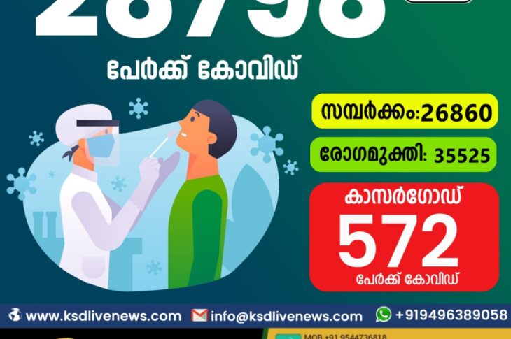 Uncategorized സംസ്ഥാനത്ത് ഇന്ന് 28798 പേർക്ക് കോവിഡ് സ്ഥിരീകരിച്ചു. സമ്പർക്കം വഴി 26860 പേർക്കും ; ആശ്വാസമായി 35525 പേർക്ക് രോഗ മുക്തിയും ; കാസർഗോഡ് ജില്ലയിൽ 572 പേർക്ക് പുതിയ കോവിഡ് കേസുകൾ ; മരണം 151May 26, 2021