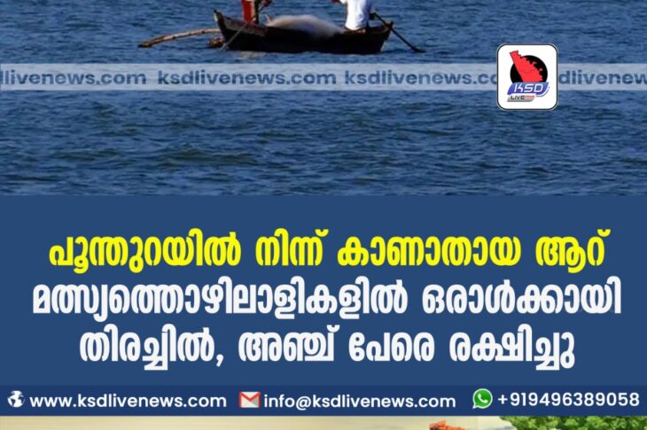 Uncategorized പൂന്തുറയിൽ നിന്ന് കാണാതായ ആറ് മത്സ്യത്തൊഴിലാളികളിൽ ഒരാൾക്കായി തിരച്ചിൽ, അഞ്ച് പേരെ രക്ഷിച്ചുMay 26, 2021