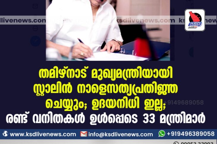 Uncategorized തമിഴ്നാട് മുഖ്യമന്ത്രിയായി സ്റ്റാലിന് നാളെ സത്യപ്രതിജ്ഞ ചെയ്യും; ഉദയനിധി ഇല്ല; രണ്ട് വനിതകള് ഉള്പ്പെടെ 33 മന്ത്രിമാര്May 6, 2021