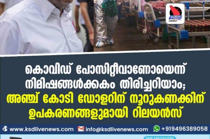 Uncategorized കൊവിഡ് പോസിറ്റീവാണോയെന്ന് നിമിഷങ്ങള്ക്കകം തിരിച്ചറിയാം; അഞ്ച് കോടി ഡോളറിന് നൂറുകണക്കിന് ഉപകരണങ്ങളുമായി റിലയന്സ്May 6, 2021