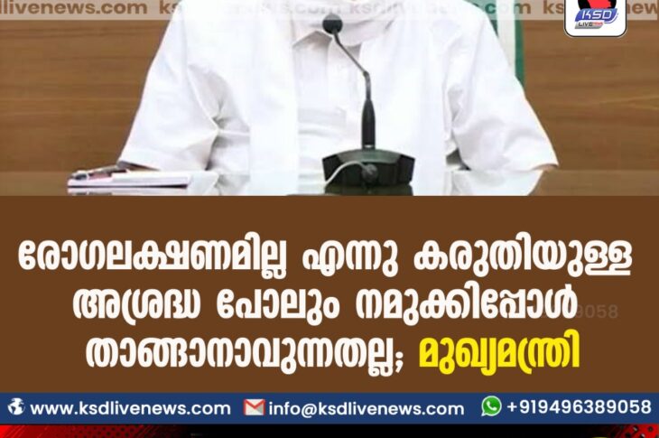 Uncategorized രോഗലക്ഷണമില്ല എന്നു കരുതിയുള്ള അശ്രദ്ധ പോലും നമുക്കിപ്പോള് താങ്ങാനാവുന്നതല്ല-മുഖ്യമന്ത്രിApril 27, 2021