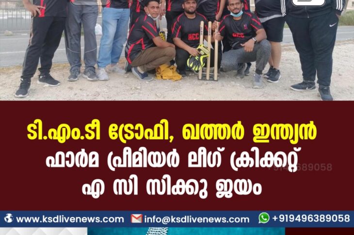 Uncategorized ട്ടി എം ട്ടീ ട്രോഫി, ഖത്തർ ഇന്ത്യൻ ഫാർമ പ്രീമിയർ ലീഗ് ക്രിക്കറ്റ് എ സി സിക്കു ജയംMarch 13, 2021