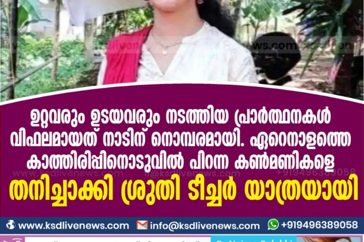 Uncategorizedകേരളം ഉറ്റവരും ഉടയവരും നടത്തിയ പ്രാര്ത്ഥനകള് വിഫലമായത് നാടിന് നൊമ്പരമായി. ഏറെനാളത്തെ കാത്തിരിപ്പിനൊടുവിൽ പിറന്ന കൺമണികളെ തനിച്ചാക്കി ശ്രുതി ടീച്ചർ യാത്രയായിOctober 21, 2020