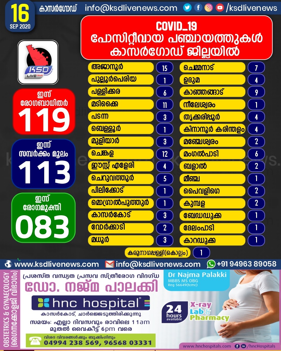 Uncategorized കാസർഗോഡ് ജില്ലയിൽ ഇന്ന് കോവിഡ് പോസിറ്റീവായവരുടെ പഞ്ചായത്ത് തിരിച്ചുള്ള സ്ഥിതി വിവര കണക്ക്September 16, 2020