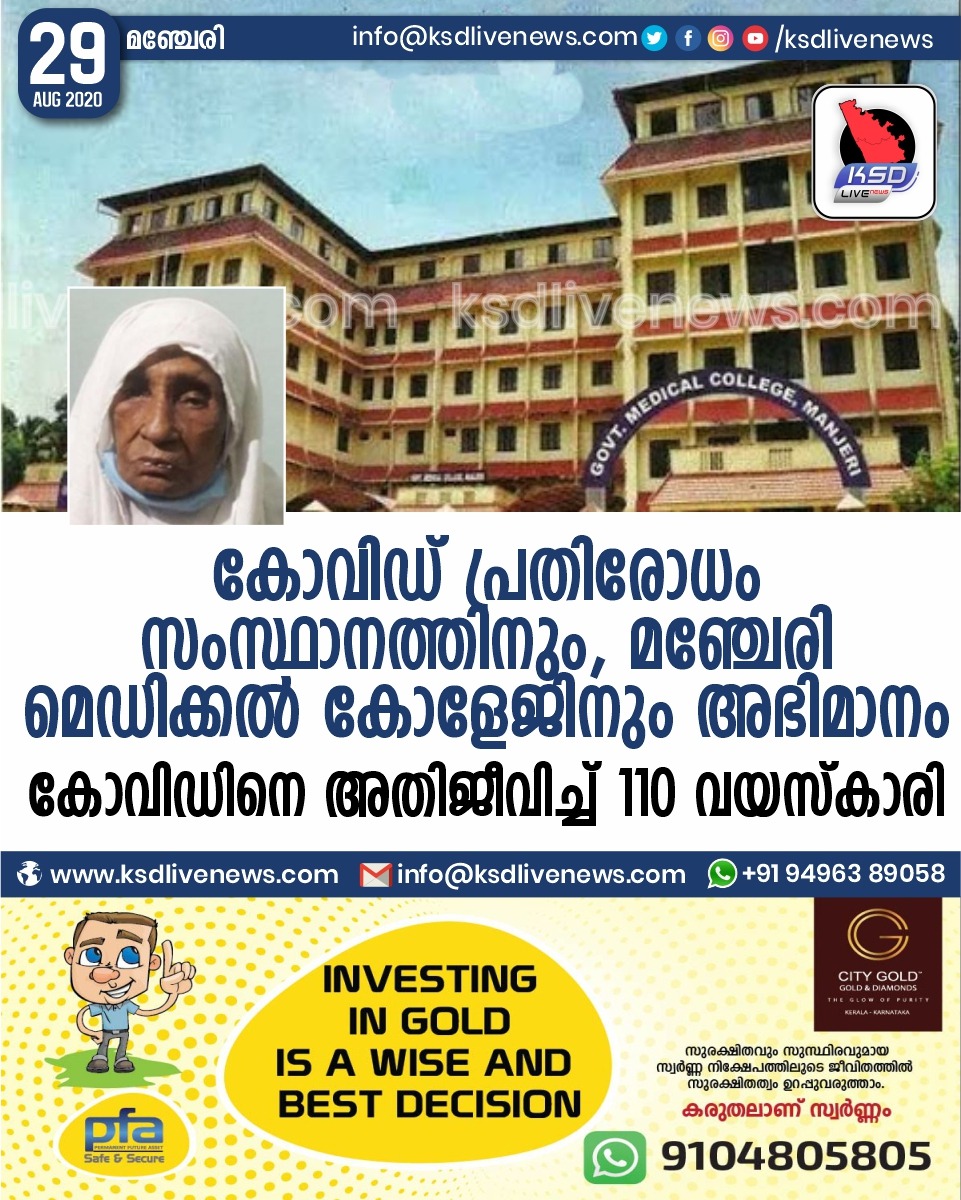 Uncategorized കോവിഡ് പ്രതിരോധം സംസ്ഥാനത്തിനും, മഞ്ചേരി മെഡിക്കല് കോളേജിനും അഭിമാനം ;കോവിഡിനെ അതിജീവിച്ച് 110 വയസ്കാരി ;August 29, 2020