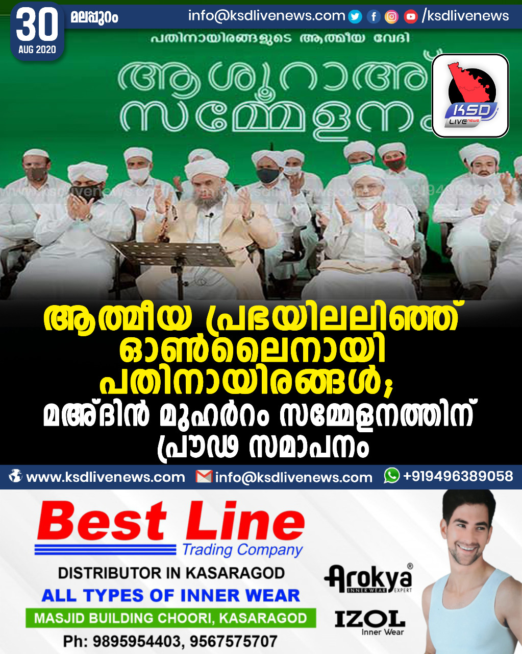Uncategorized ആത്മീയ പ്രഭയിലലിഞ്ഞ് ഓണ്ലൈനായി പതിനായിരങ്ങള്;മഅ്ദിന് മുഹര്റം സമ്മേളനത്തിന് പ്രൗഢ സമാപനംAugust 30, 2020