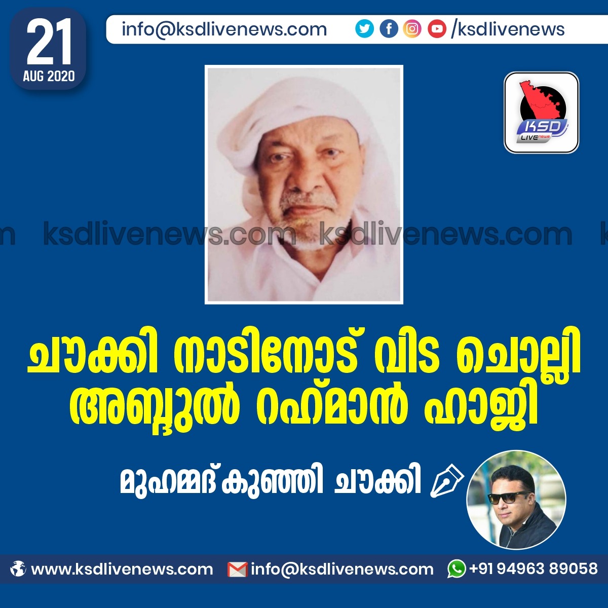 Uncategorized ചൗക്കി നാടിനോട് വിട ചൊല്ലി അബ്ദുൽ റഹ്മാൻ ഹാജി; മുഹമ്മദ് കുഞ്ഞി ചൗക്കി ✍️August 21, 2020