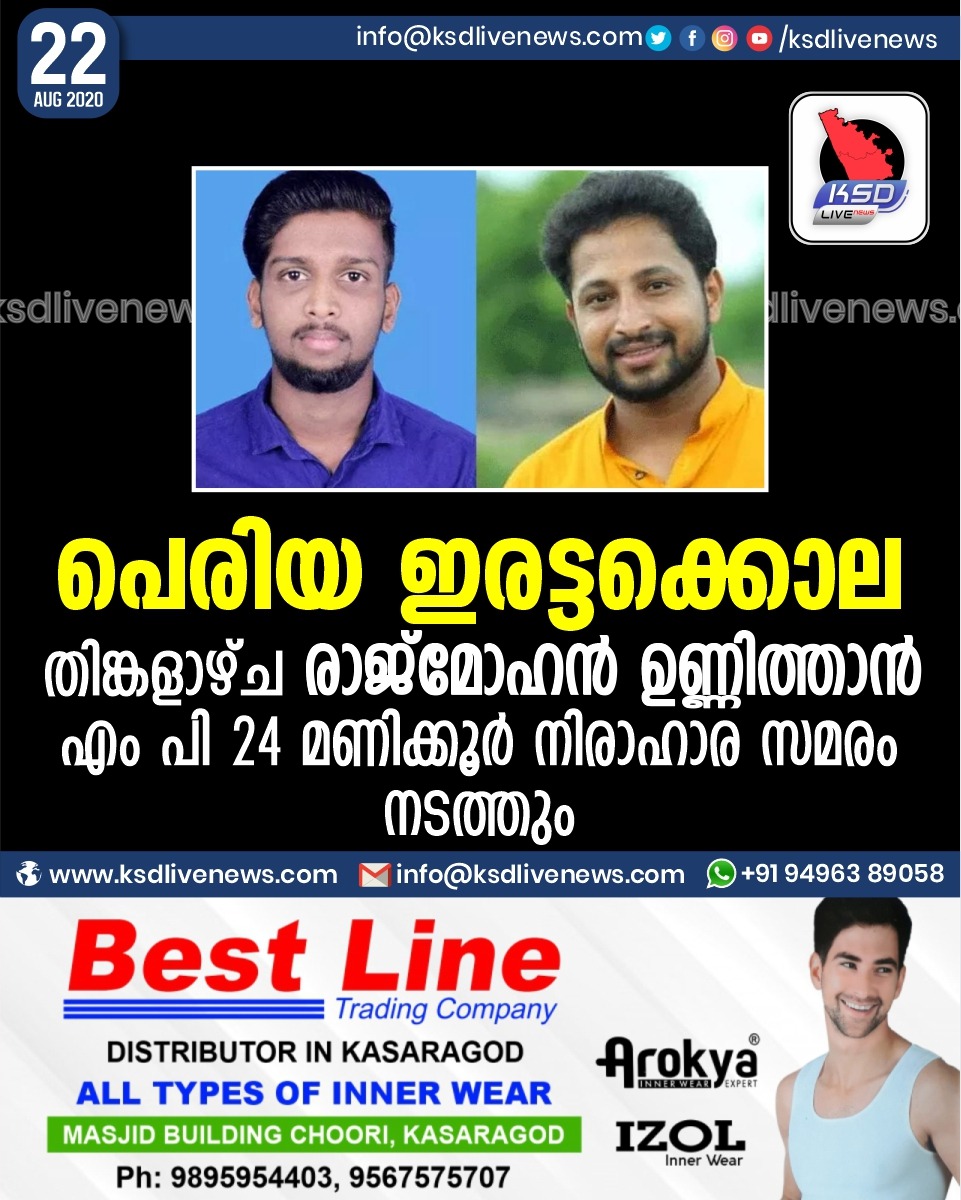 Uncategorized പെരിയ ഇരട്ടക്കൊല: തിങ്കളാഴ്ച രാജ്മോഹൻ ഉണ്ണിത്താൻ എം പി 24 മണിക്കൂർ നിരാഹാര സമരം നടത്തും.August 22, 2020