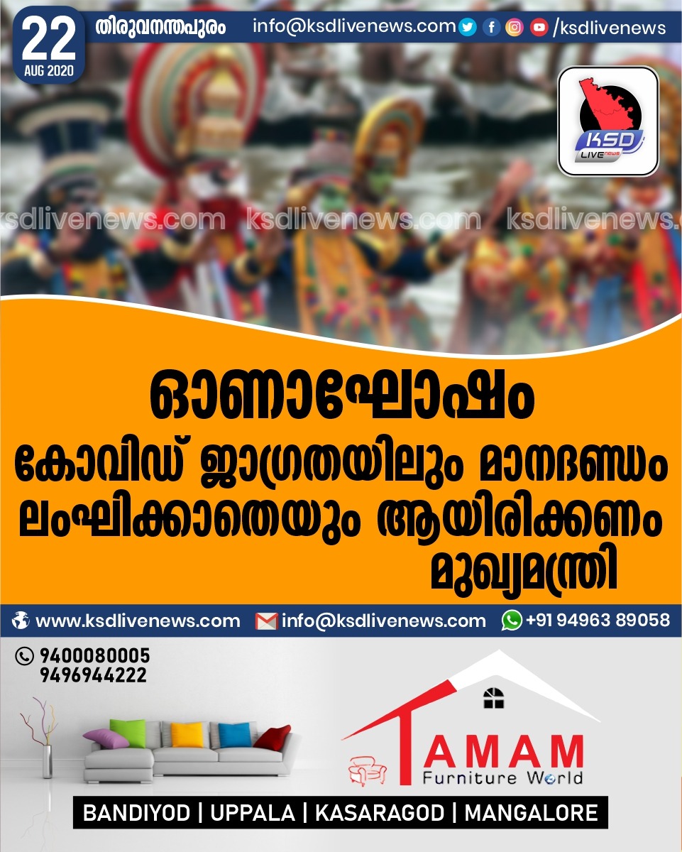 Uncategorized ഓണാഘോഷം കോവിഡ് ജാഗ്രതയിലും മാനദണ്ഡം ലംഘിക്കാതെയും ആയിരിക്കണംമുഖ്യമന്ത്രിAugust 22, 2020