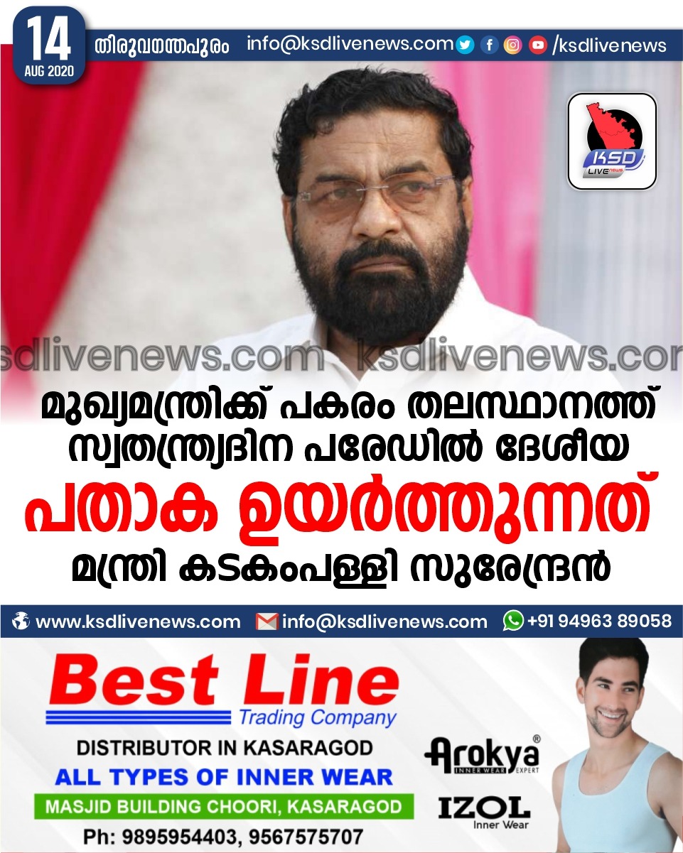 Uncategorizedകേരളം മുഖ്യമന്ത്രിക്ക് പകരം തലസ്ഥാനത്ത് സ്വതന്ത്ര്യദിന പരേഡിൽ ദേശീയപതാക ഉയർത്തുന്നത് മന്ത്രി കടകംപള്ളി സുരേന്ദ്രൻAugust 14, 2020