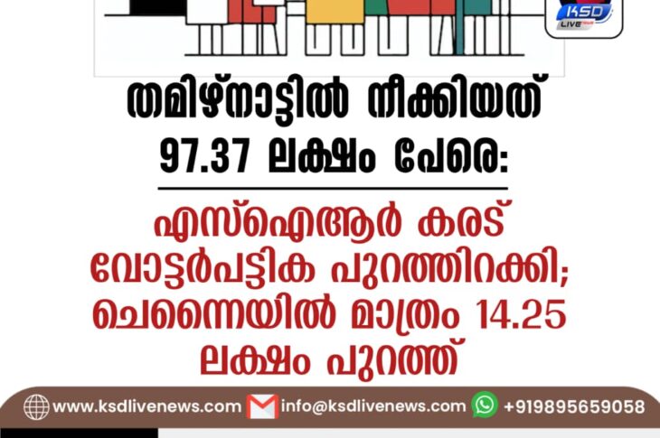 Uncategorized തമിഴ്നാട്ടിൽ നീക്കിയത് 97.37 ലക്ഷം പേരെ: എസ്ഐആർ കരട് വോട്ടർപട്ടിക പുറത്തിറക്കി; ചെന്നൈയിൽ മാത്രം 14.25 ലക്ഷം പുറത്ത്December 19, 2025