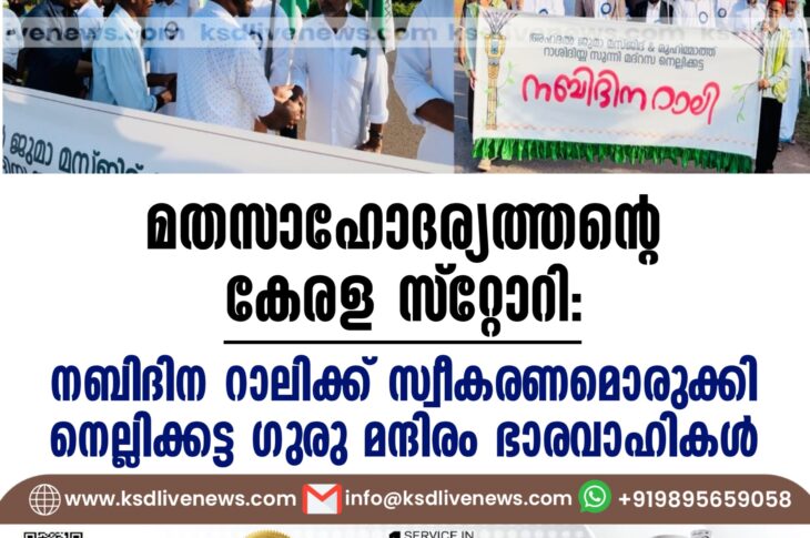 Uncategorized മതസാഹോദര്യത്തിന്റെ കേരള സ്റ്റോറി: നബിദിന റാലിക്ക് സ്വീകരണമൊരുക്കി നെല്ലിക്കട്ട ഗുരു മന്ദിരം ഭാരവാഹികള്September 17, 2024