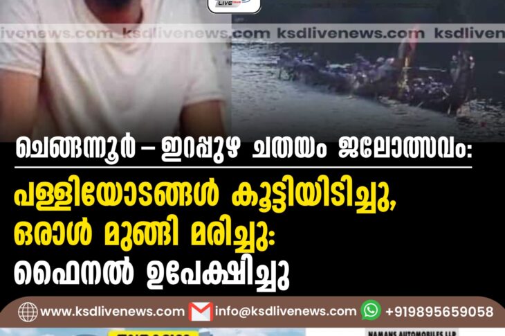 Uncategorized ചെങ്ങന്നൂര്-ഇറപ്പുഴ ചതയം ജലോത്സവം: പള്ളിയോടങ്ങള് കൂട്ടിയിടിച്ചു, ഒരാള് മുങ്ങി മരിച്ചു: ഫൈനല് ഉപേക്ഷിച്ചുSeptember 17, 2024