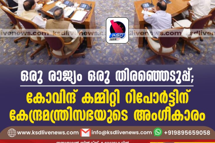Uncategorized ഒരു രാജ്യം ഒരു തിരഞ്ഞെടുപ്പ്; കോവിന്ദ് കമ്മിറ്റി റിപോര്ട്ടിന് കേന്ദ്രമന്ത്രിസഭയുടെ അംഗീകാരംSeptember 18, 2024