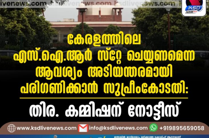 Uncategorized കേരളത്തിലെ എസ്.ഐ.ആർ സ്റ്റേ ചെയ്യണമെന്ന ആവശ്യം അടിയന്തരമായി പരിഗണിക്കാന് സുപ്രീംകോടതി: തിര. കമ്മിഷന് നോട്ടീസ്November 21, 2025