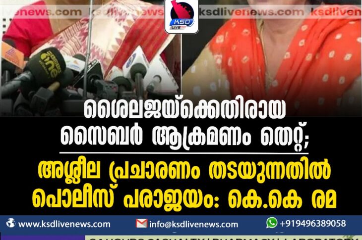 Uncategorized ശൈലജയ്ക്കെതിരായ സൈബര് ആക്രമണം തെറ്റ്, അശ്ലീല പ്രചാരണം തടയുന്നതില് പൊലീസ് പരാജയം: കെ കെ രമApril 17, 2024