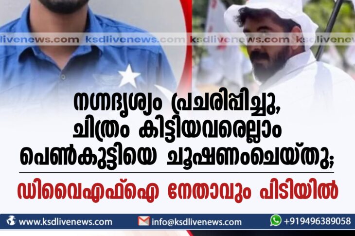 Uncategorized നഗ്നദൃശ്യം പ്രചരിപ്പിച്ചു, ചിത്രം കിട്ടിയവരെല്ലാം പെണ്കുട്ടിയെ ചൂഷണംചെയ്തു; DYFI നേതാവും പിടിയില്February 6, 2024